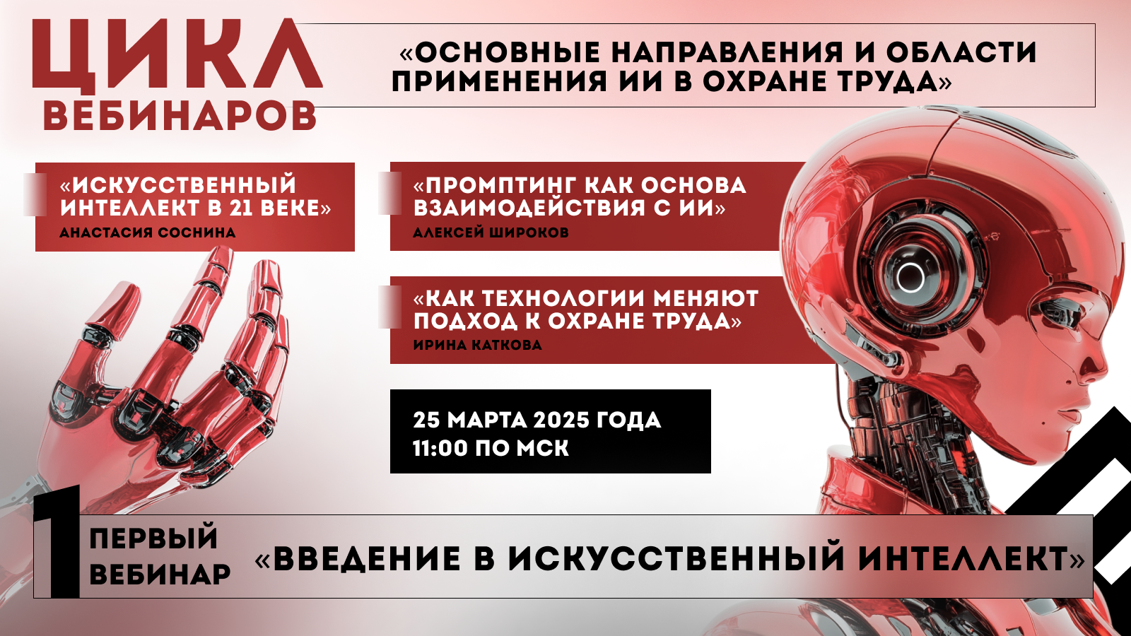 Первый вебинар «Введение в Искусственный интеллект» из цикла вебинаров «Основные направления и области применения Искусственного интеллекта в охране труда», прошедший 25 марта, стал важным событием для всех, кто интересуется применением искусственного интеллекта в сфере мониторинга и анализа условий охраны труда.